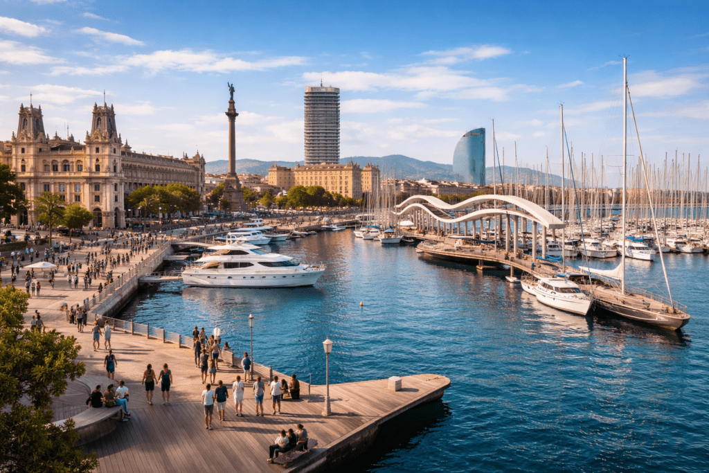 Port Vell combines historical identity, modern marina infrastructure, and international connectivity.